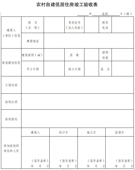 2.农村自建低层住房竣工验收表